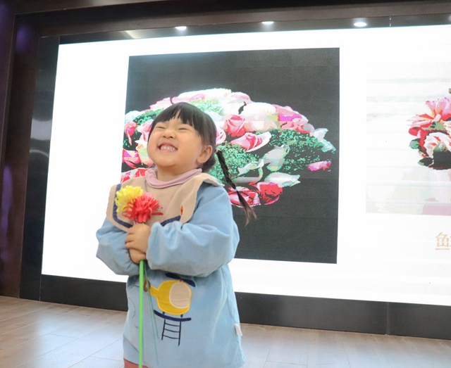 为了表达对英雄人物的感谢,孩子们决定亲手做一朵花送给他们,一双稚嫩的小手专注的剪出花瓣、卷出小花,做出了美丽的花朵,这一幕仿佛预示着在一代又一代人的努力下和平的花朵终将绽放。